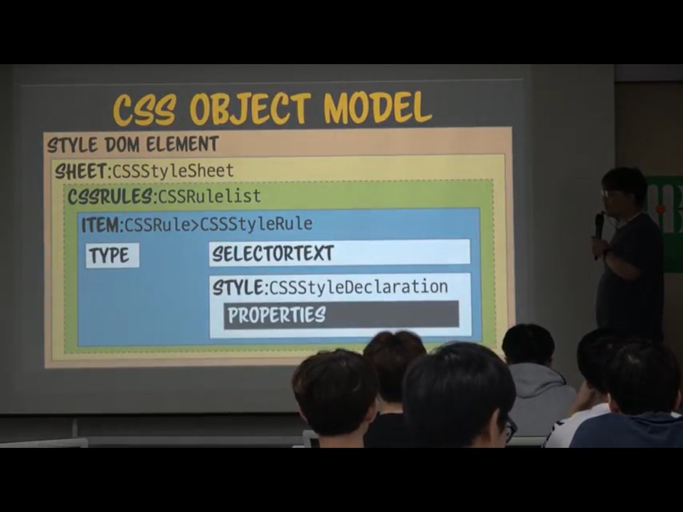 DOM에 inline style을 넣는방식이 아니라, css 그 자체를 수정 할 수 있다. CSS를 object화 하고 modeling 한것이 CSSOM이다.