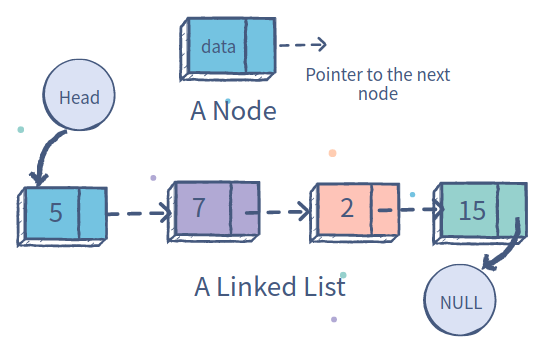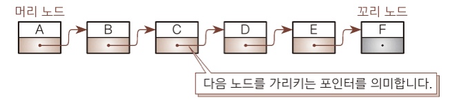 각각의 노드는 데이터와 다음 노드를 가리키는 포인터를 가지고 있다.