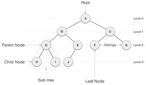 정점(node)와 선분(branch)로 이루어져있으며, 사이클을 이루지 않는다.